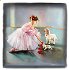 Here we can see the a little ballet dancer sit in the middle of the room, and playing with a puppy. The ballerina tutu of the girl-dancer is snow-white, the top is light rose color. The quality of the painting is very high, details of the costume are just amazing!