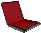 The box is constructed from paper-mache. Black lacquer is used to paint the exterior of the box while red lacquer completes the interior of the work.