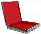 The box is constructed from paper-mache. Black lacquer is used to paint the exterior of the box while red lacquer completes the interior of the work.