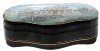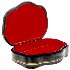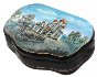 The box is constructed from paper-mache. Black lacquer is used to paint the exterior of the box while red lacquer completes the interior of the work. A hinge is fastened to the top of the composition, and the box rests on a wavy platform. The work is signed with the artist's name, 2016 and the village of Fedoskino.