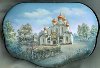 In the foreground, the artist depicts Russian Church with several golden domes.