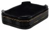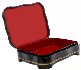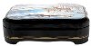 The box is constructed from paper-mache. Black lacquer covers the exterior and red lacquer covers the interior of the box.