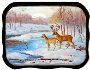 Here the artist has depicted a large male deer with horns and a female deer at the bank of the river.The trees are leafless, snow is everywhere. Winter time...