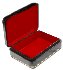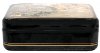 The box is constructed from paper-mache. Black lacquer is used to paint the exterior of the box while red lacquer completes the interior of the work. A hinge is fastened to the left of the scene, and the box rests on a flat bottom.