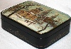 The box is constructed from paper-mache. A hinge has been fastened to the top of the scene, and the box rests on a flat bottom. The work is signed with the artist's name, the village of Fedoskino, tthe tittle and the year of 2007.
