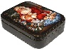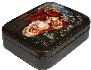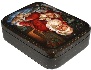 Description: This charming box is a creation of Taisiya Danchenko from the village of Fedoskino. The work is called "Santa's Favourites", and depicts Santa Clause surrounded with kittens and puppies that he is going to present to good boys and girls. On the box's exterior bottom the artist has painted one more scene that depicts the presents that Santa Clause prepared for children. The scenes are painted in bright oils; in some areas the oils are mixed with gold powder to produce a magic effect.