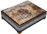 Description: Igor Isaev from the village of Fedoskino is the author of this stunning box. It shows a peaceful view of the ancient Russian town of Suzdal. In the background we can see the grandeur of the Intercession Cathedral while in the foreground we can observe a special charm of the Russian rural wooden architecture. The scene is painted in light brown tones suitable for depiction of an autumn season. This palette is enlivened by silver powder that highlights the trees and the architecture.