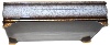 The box's exterior is beautifully decorated. The scene is framed with a wide gold band. Another wide gold band can be found decorating the bottom part of the box's body. The box's exterior imitates a stone color: tiny black veins are scattered against the light grey background. The box's interior is traditionally covered with red lacquer.
