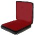 The box is constructed from paper-mache. The black lacquer is used to paint the exterior of the box while red lacquer completes its interior. It has a hinge from the top of the composition and rests on a flat bottom. Signed and dated (2014) by the dark oils under the composition.