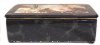 The composition is framed with a gold hand-painted line, another gold line can be found on the sides of the box. The sides of the box are decorated with figures of the humans, animals and mythical objects.