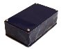 The box is constructed out of paper-mache. Dark blue lacquer covers the exterior and cream gray lacquer covers the interior of the box. The box has a hinge to its top and rests on four rounded metal legs. The work is signed with the artist's name on the right side of the lid.