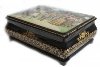 The scene is framed with a gold band. The box's sides are adorned with a rich pattern painted in gold.