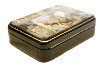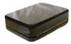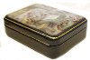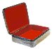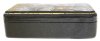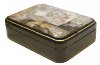 The sides of a box are imitates the color of a brown marble. The box's exterior is black, while the box's interior is red.