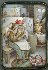 In this composition Baba-Yaga sit inside her Hut and preparing some food. In front of her we can see a basket full of red poisonous mushrooms-fly agarics. Her servant, Black Cat, is looking of what she is doing from her back.