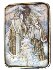 The palette incorporates blue and white oils as the action takes place in winter, with addition of gold paints to give a feeling of magic and splendor. The artist demonstrates his unsurpassed skill while painting the charackter's festive attires. The effect of festivity is strengthened by the two pieces of mother-of-pear inlaid into the costumes of both character; they shimmers beautifully with dark green color.The branches of trees covered with white fluffy snow, that are also expressively painted!