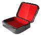 The box exterior imitates the coloring of a brown marble (tiny dark brown veins are scattered against the black background). The interior is traditionally covered with red lacquer.