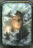 The scene is painted in blue and grey oils, and face of a lady in light brown oils.The painting is framed with a gold line.