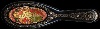 Each of these four items contain either a composition related to the story or highly decorative patterning. What would a happy ending be without a glimpse of the evil defeated? The round box depicts the wicked Queen as she gazes into her infamous mirror of beauty critique. A flowered pattern of golden and aluminum filigree surrounds the composition. The hair brush depicts the eventual feast in celebration of the two lost loves finally getting back together. The composition is seen in the widest portion of the brush surface. A radiant pattern of intricate gold filigree, accented with aluminum wild flowers, frames the scene and then extends into decoration for the handle. A stunning piece. The square box displays the Princess and Prince Elisey reunited in the palace with the Seven Bogatyrs to the right and the old Tsar to the left. This composition is framed with well detailed golden filigree and minute aluminum wild flowers. The lid extends over the base concealing the inner edge of the base within. The outer edge of the lid is painted with flowing vine work which develops into tulips and wild flowers painted powder blue and violet-orange. The vines are a mixture of forest and lime green. The inner vertical edge of this box is decorated with a pattern identical to the one which acted as the framing for the composition. The comb is decorated with swirls of golden filigree, aluminum flowers and tightly wound gold scrollwork on its upper surface.