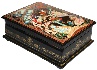 Description: Viktor Kuznetsov is the author of this stunning piece of Mstera lacquered miniature. It depicts some key moments from the Russian fairy-tale "Vechyorka (Evening), Zorka (Dawn) and Polunochka (Night)".
