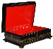 The box is made out of paper-mache. Black lacquer covers the exterior and red lacquer covers the interior of the box. A hinge has been fastened to the left of the scene, and the box rests on four legs. The work is signed with the artist's name, the village of Mstera, the year of 2010 and the title "Vechyorka, Zorka, and Polunochka".