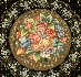 The box is elegantly designed. In the center there is a bouquet of flowers painted against brown background. The flowers are painted in soft tempera paints and richly detailed with gold paints. Central composition is framed with an intricate gold floral pattern. More complex patterns dominated by large beautiful flowers decorate the edges of the lid. The artist does not limit himself to decorating only the lid. Side's of the box are decorated with charming floral ornamentation.