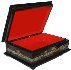 The box is constructed from paper-mache. Black lacquer is used to paint the exterior of the box while red lacquer completes the interior of the work. The box is hinged from the top of the composition, and rests on four legs. The box is signed with the artist's name, the village of Mstera and the title: "The Cathedral's Square in Moscow Kremlin" at the bottom of the composition on the lid.