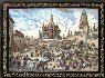 Painted in red,yellow, blue and brown tones this scene opens up a grandiose panorama before the viewer's eyes. It helps to imagine how ancient Moscow looked like, and observe everyday life of people who lived then. White-stone cathedrals and splendid palaces rise behind the strong fortifications, the burnished gold onion domes glisten on the sun, and the townspeople are occupied with their daily routine: some of them carry vegetables to the market, the others pasture goats and sell their goods; while the nobility rides in carriages. The overall detail in this scene is simply incredible!