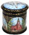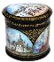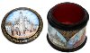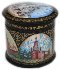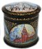 Description: This small round box has been painted by Mikhail Strunin from the village of Mstera. Most of all this artist likes to depict architecture; he has created many works dedicated to picturesque views of Moscow and St.Petersburg. This box features the views of old Moscow; working on it Strunin used old paintings drawn in the 18th and 19th centuries.