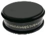 The composition is framed with a silver line and then decorated with the original pattern painted in gold and aluminum. The same aluminum pattern wraps around the sides of the box.