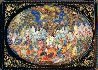 The composition is painted in oval, the rest of the lid is covered with a beautiful ornament painted in gold. The decoration of the sides is marvelous! It has a form of intricately arranged flowers and foliage. Its coloring alternates between red and gold.