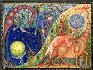 Description: This colorful piece by a well-known Mstera artist Daniil Molodkin shows a philosophical theme of non-stop cirle of changing night by a day and so on.