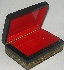 The box is constructed out of high-quality paper-mache. Black lacquer is used to paint the exterior of the box and red lacquer is used to paint the interior of the box. The lid is hinged from the top of the composition, and the box rests on four rounded legs. The work is signed with the names of the artists and the village of Palekh.