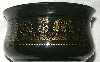 The box is constructed from paper-mache. Black lacquer is used to paint the exterior of the piece while red lacquer completes the interior of the box. The box is decorated with rolling golden filigree around the composition and around the base we have a well executed gold floral pattern accented with aluminum.