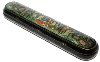 The work is a good example of intricate Palekh art. The greens and blues become electric, the reds and oranges passionate. Hair thin gold and silver accents have been used extensively throughout the composition adding rich luminescence and delicacy to the piece.