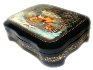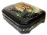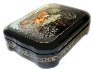 Description: This box has been painted by talented Palekh artist Alexander Shemarov. It shows happy Russian kids enjoying a frosty, winter day. They sleigh down a snowy hill and admire whirling snowflakes. The dog is folowing them and freindly barking.