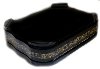 The box is constructed out of paper-mache. Black lacquer covers the exterior and red lacquer covers the interior of the box. Gold and aluminum paints are used in the patterns that decorate the box's exterior. The patterns are both precise, fine, and add a considerable amount of aesthetic value to the box.