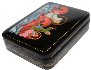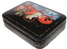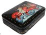 Description: Talented artist Konovalova Valentina from the village of Palekh has painted this scene with a winter troika (three horse sleigh) speeding through the Russian countryside. A lonely lady hides from the snowstorm in the sleigh while a driver encourages the horses.