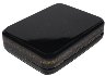 The box is constructed out of paper-mache. Black lacquer covers the exterior and red lacquer covers the interior of the box. Gold dot ornamentation frames the scene, and another expanded pattern, accented with aluminum, wraps around the sides of the box. The box has a hinge above the composition and rests on a flat bottom. The work is signed with the artist's name and Palekh.