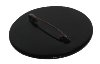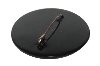 The brooch is made out of paper-mache. Black lacquer covers both sides of a brooch. The scene is framed with a golden dot ornament.