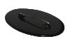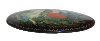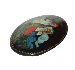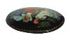 The brooch is made out of paper-mache. Black lacquer covers both sides of a brooch. The scene is framed with a golden dot ornament.