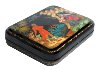 The box is hinged to the top of the composition and rests on a flat bottom. The artist signed his name, date 2011 and the village of Palekh on the bottom of the composition.