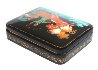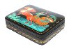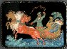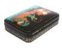 Description: Talented artist Alexander Kornilov from the village of Palekh has painted this scene with a winter troika (three horse sleigh) speeding through the Russian countryside. A couple hides from the snowstorm in the sleigh while a driver encourages the horses.