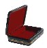 The box is constructed from paper-mache. Black lacquer is used to paint the exterior of the box while red lacquer completes the interior of the work.