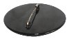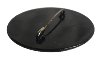 The brooch is made out of paper-mache. Black lacquer covers both sides of a brooch. The edges of a brooch are decorated with a beautiful dot ornament painted in gold paints. The brooch can be attached to your clothing with a pin.