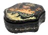 Description: Talented artist Konovalov Konstatin from the village of Palekh has painted this scene with a winter troika (three horse sleigh) speeding through the Russian countryside. A couple hides from the snowstorm in the sleigh while a driver encourages the horses.