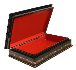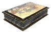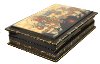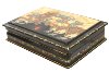 The box is constructed from paper-mache. Black lacquer is used to paint the exterior of the box while red lacquer completes the interior of the work. The lid is hinged from the top of the scene, and the box rests on four round legs. The work is signed with the artist's name, the village of Palekh and 1996.