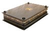 The edges of the lid are adorned with a golden and silver dot ornament, with the inclusions of silver snowflakes. The sides of the box are decorated with