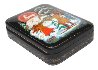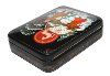 The scene is framed with a nice golden dots ornament while the box's sides are adorned with a feligree gold and silver scrolling design.