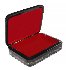 The box is made out of paper-mache. Black lacquer covers the exterior and red lacquer covers the interior of the box. The lid is hinged to the left of the composition, and the box rests on a flat bottom. The work is signed with the artist's name, Palekh, and the title-Siver Hoof.