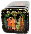 The box has a hinge above the composition and rests on two platforms. Upon completing the work on this piece the artist writes Palekh and signs her name at the bottom of the composition.